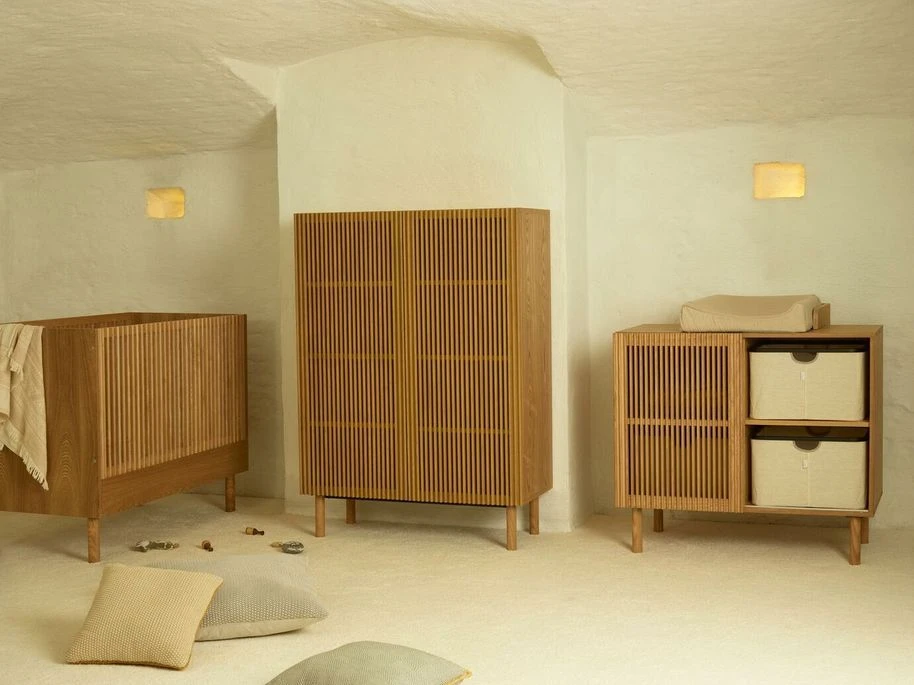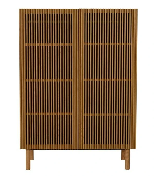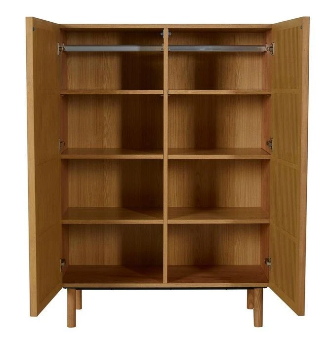 Elle est faite en bois MDF décor frêne avec 2 portes en frêne massif, sa structure est dotée de 2 tringles et de 6 étagères pour optimiser votre rangement.