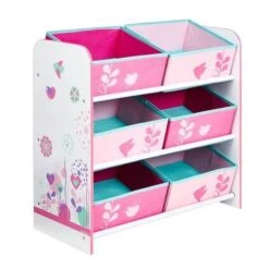 WORLDS APPART Meuble De Rangement Enfant – 6 Bacs HelloHome Fleurs Et Oiseaux – Rose