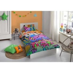 Good Morning Housse De Couette 5481-P GRAFFITI 135×200 Cm Multicolore