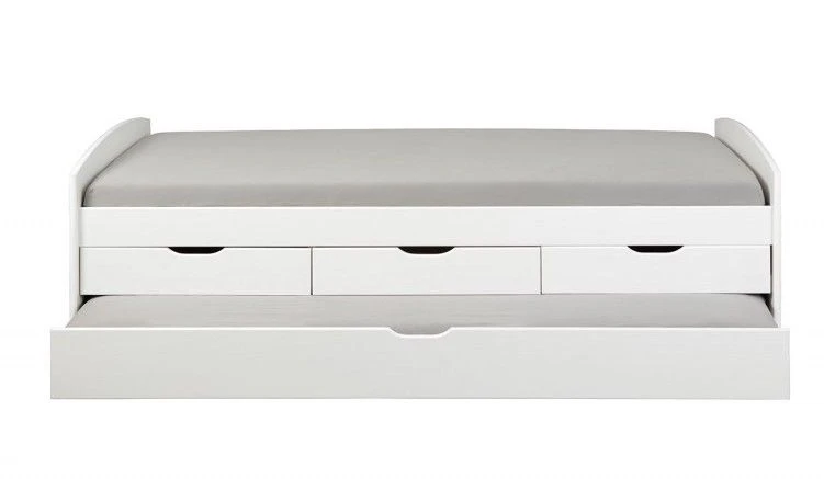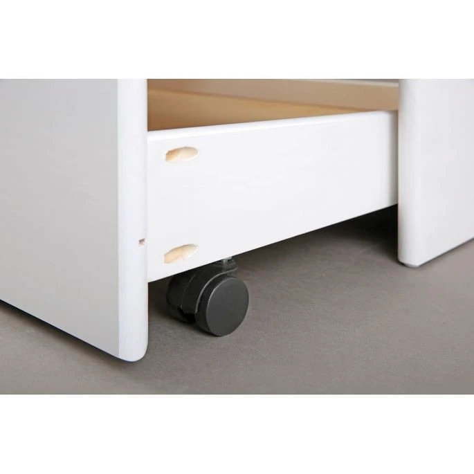 3 tiroirs de rangement + 1 pouvant accueillir un matelas de 90x200cm