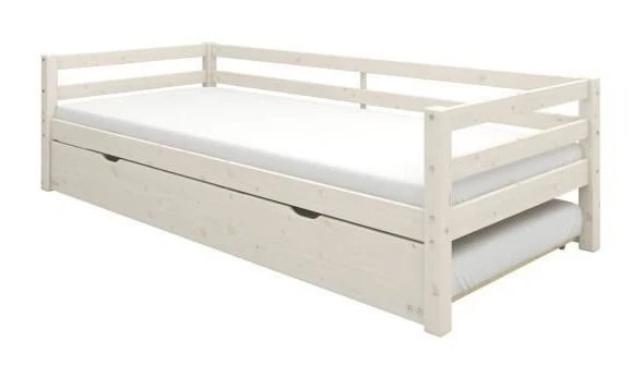 SOREN Lit banquette gigogne enfant – Structure en bois Pin massif – Coloris : Blanchie – Sommiers a lattes inclus
