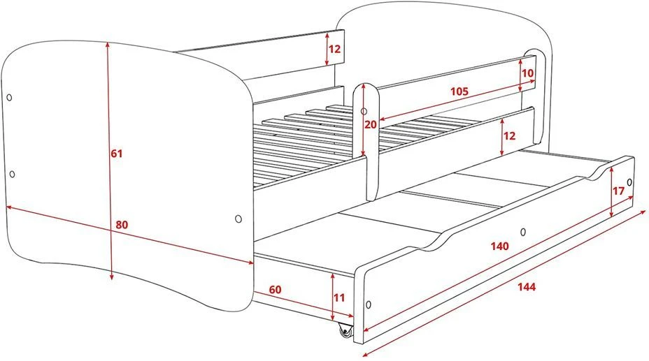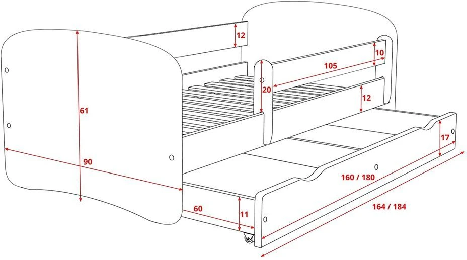 Tiroir de rangement : en option ne peut pas accueillir de matelas