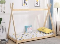 Il est livré avec un sommier à lattes en bois de bouleau et un matelas à mousse d’une épaisseur de 7 cm.
