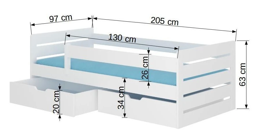 Le lit dispose de deux coffres de rangement pratiques de L 95 x P 80 x H 20 cm chacun.