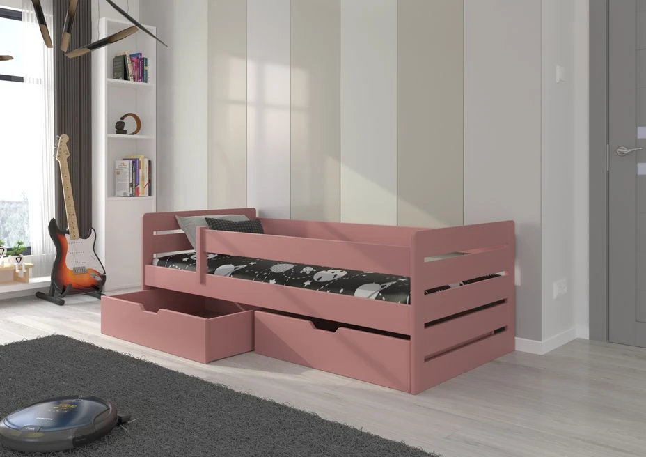 Fabriqué avec soin en bois de pin vernis rose mat robuste et esthétique.nous utilisons des vernis écologiques, peints au pistolet, pour protéger le lit. Grâce à trois couches de vernis appliquées avec précision, notre lit garantit une résistance exceptionnelle aux dommages mécaniques et à divers types de salissures.