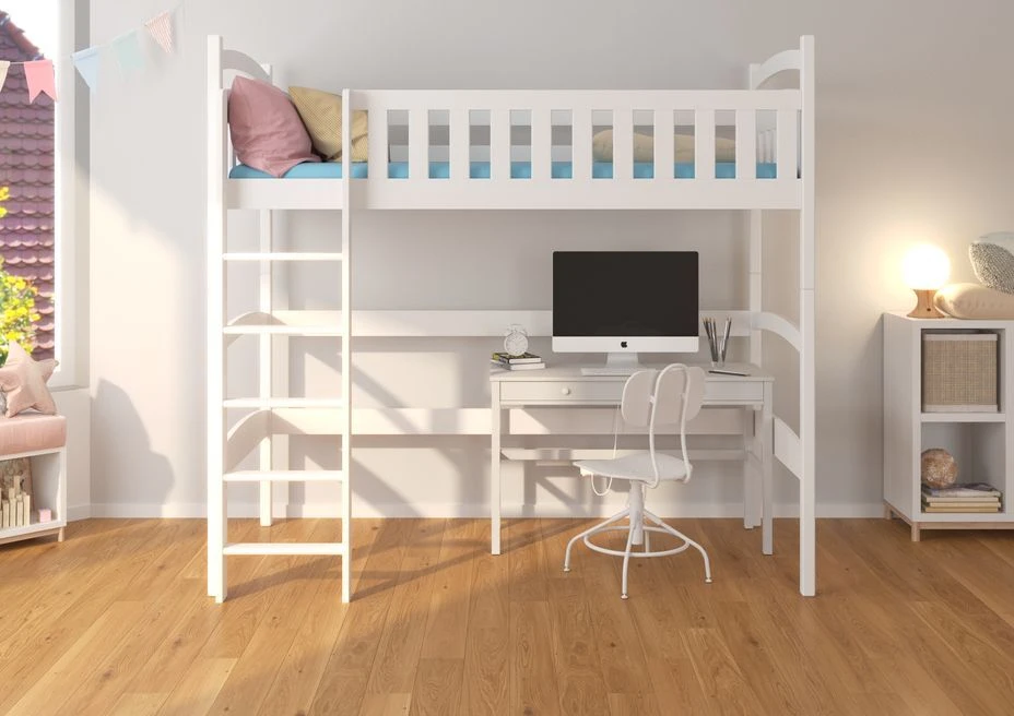 Optimisez l’espace dans la chambre de votre enfant tout en lui offrant un lieu confortable pour dormir, étudier et jouer. Le lit mezzanine Miloka en bois de pin blanc est la solution idéale pour les espaces restreints tout en ajoutant une touche moderne et élégante à la décoration de la chambre.