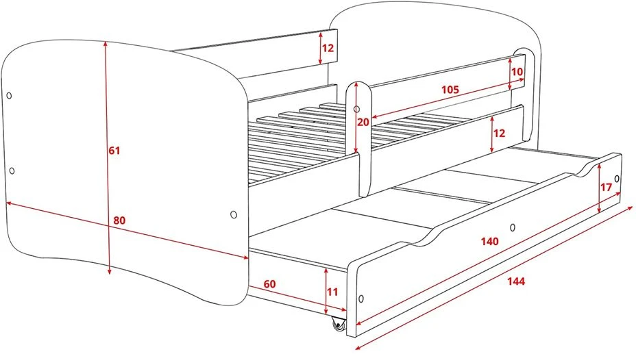 Tiroir de rangement : en option ne peut pas accueillir de matelas