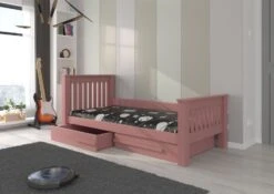 Lit Enfant Bois Pin Rose 90×200 Cm Avec 2 Tiroirs De Rangement Kiko