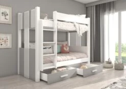 Lit Superposé Blanc Et Gris Clair 2 Couchages 80×180 Cm Ou 90×200 Cm Avec Tiroirs De Rangement Luka