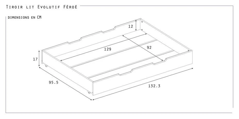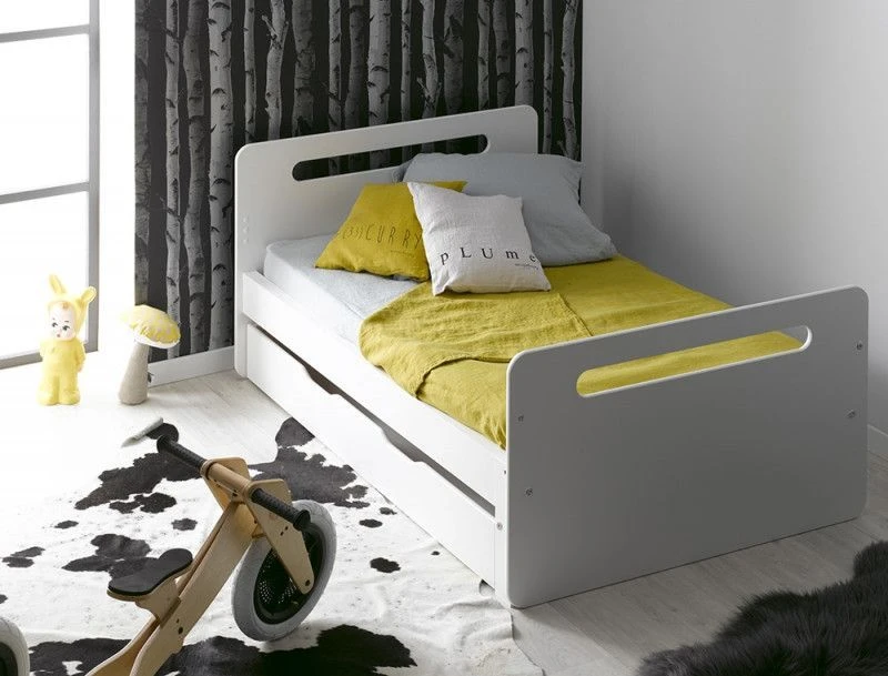 Couchage 90×140 cm évolutif en 90×190 cm grâce au kit de transformation inclus.