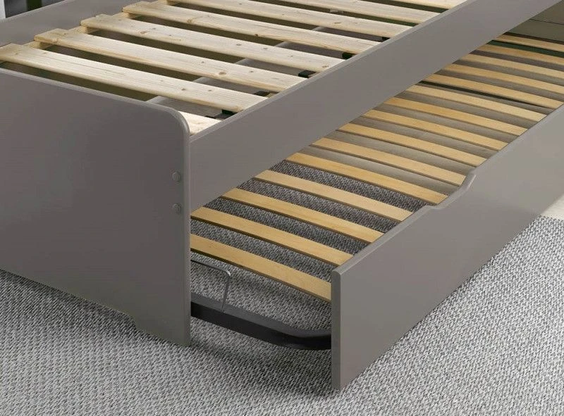 Il est fait en bois MDF taupe avec un style chic et intemporel, et son tiroir pourra vous servir de couchage d’appoint en accueillant un matelas