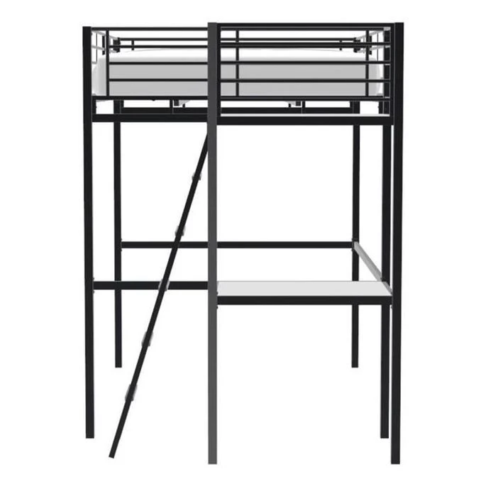 Lit mezzanine avec bureau intégré – Structure en métal laqué époxy – Coloris : Noir – Echelle et bureau réversible