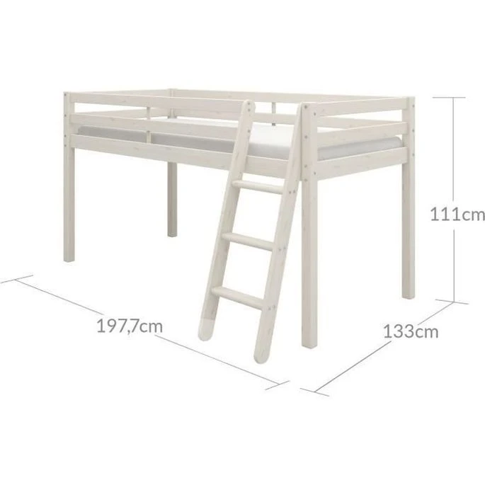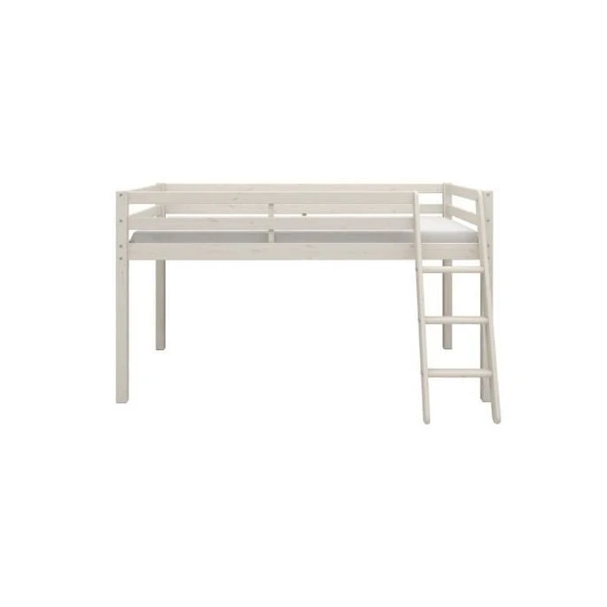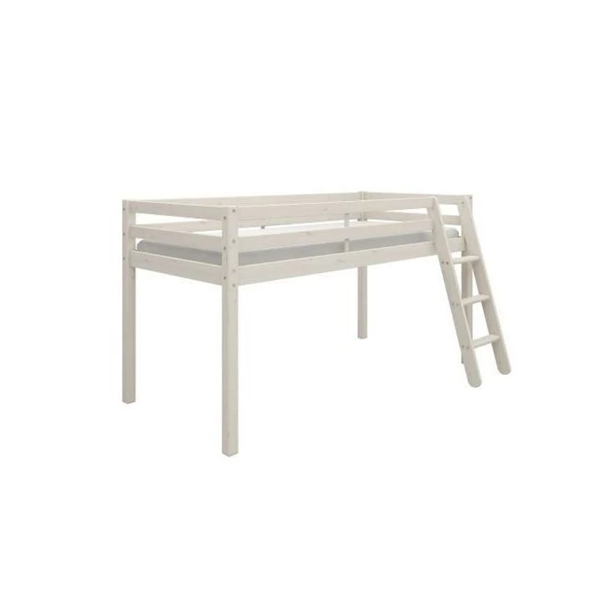 ANDRUS Lit mi-hauteur enfant- Structure en bois Pin massif – Coloris : Blanchi