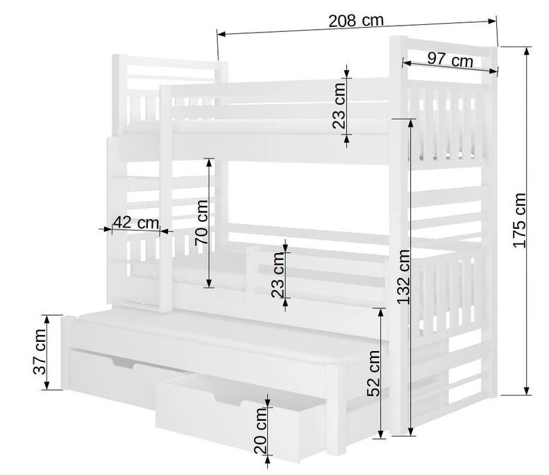 Il est équipé d’une echelle facile d’accès, ainsi que de deux grand tiroirs de 100 x 80 x 20 cm chacun pour ranger des affaires.