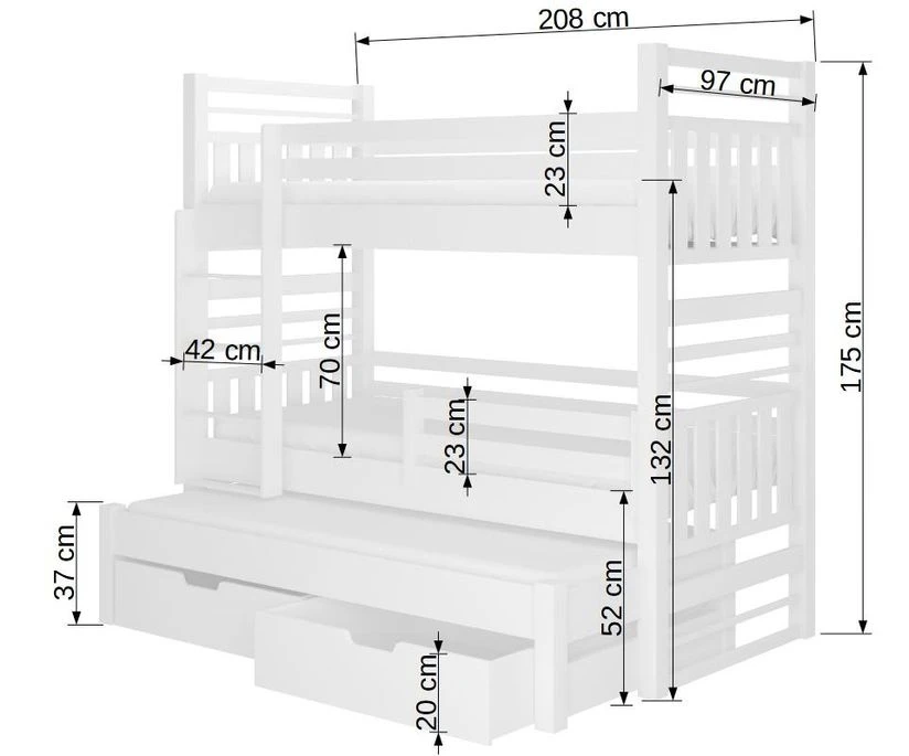 Il est équipé d’une echelle facile d’accès, ainsi que de deux grand tiroirs de 100 x 80 x 20 cm chacun pour ranger des affaires.