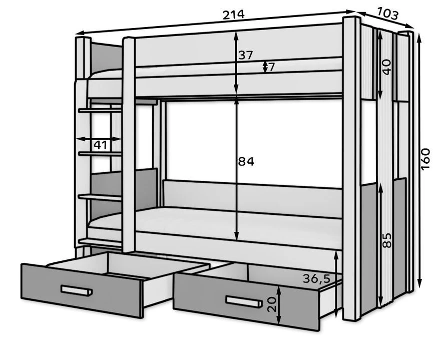 Ce lit superposé est proposé avec deux couchages au choix soit 80×180 cm ou de 90×200 cm. La sécurité étant notre priorité, nous avons installé une échelle fixe pour faciliter l’accès au lit supérieur. Vous pouvez être rassuré(e) quant à la stabilité et la sécurité de notre lit pour vos enfants.