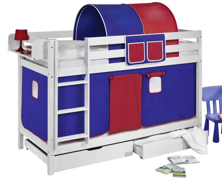 En option, le tunnel, l’étagère, les matelas mousse (de fabrication Européenne épaisseur 14 cm )et le set de 2 tiroirs L 185 x L 85 x H 23 cm par tiroir et l’étagère l 80 cm.