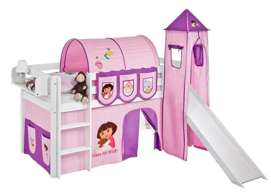 L’échelle et le toboggan peuvent être installés de chaque coté du lit.