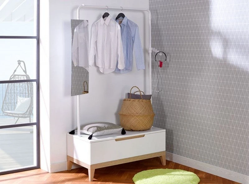 Structure avec 1 tiroir, 1 tringle et 1 miroir