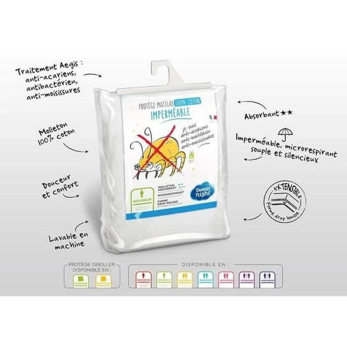 SWEETNIGHT 2 Protege-matelas Imperméable Anti-acariens NoeMIE 2x70x200cm – Blanc
